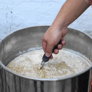 Sobre la cocción, se elaboró una American Pale Ale con trigo en hojuelas, acompañada de los lúpulos Sorachi Ace, Wakatu y Mandarina Bavaria, de unos 40 ibu y 5,7% alc, por lo que esperamos que sea una cerveza muy aromática. La receta fue elaborada por Ignacio “Nato” Daneri, cervecero de la futura cervecería. Originalmente pensada para para 20 litros / 1040 OG, se obtuvieron 24 litros / 1056 OG, debido a la técnica de macerado escalonado empleada en la elaboración. (PROXIMAMENTE LA RECETA SERÁ SUBIDA A ESTA PÁGINA, SECCIÓN “RECETAS”)